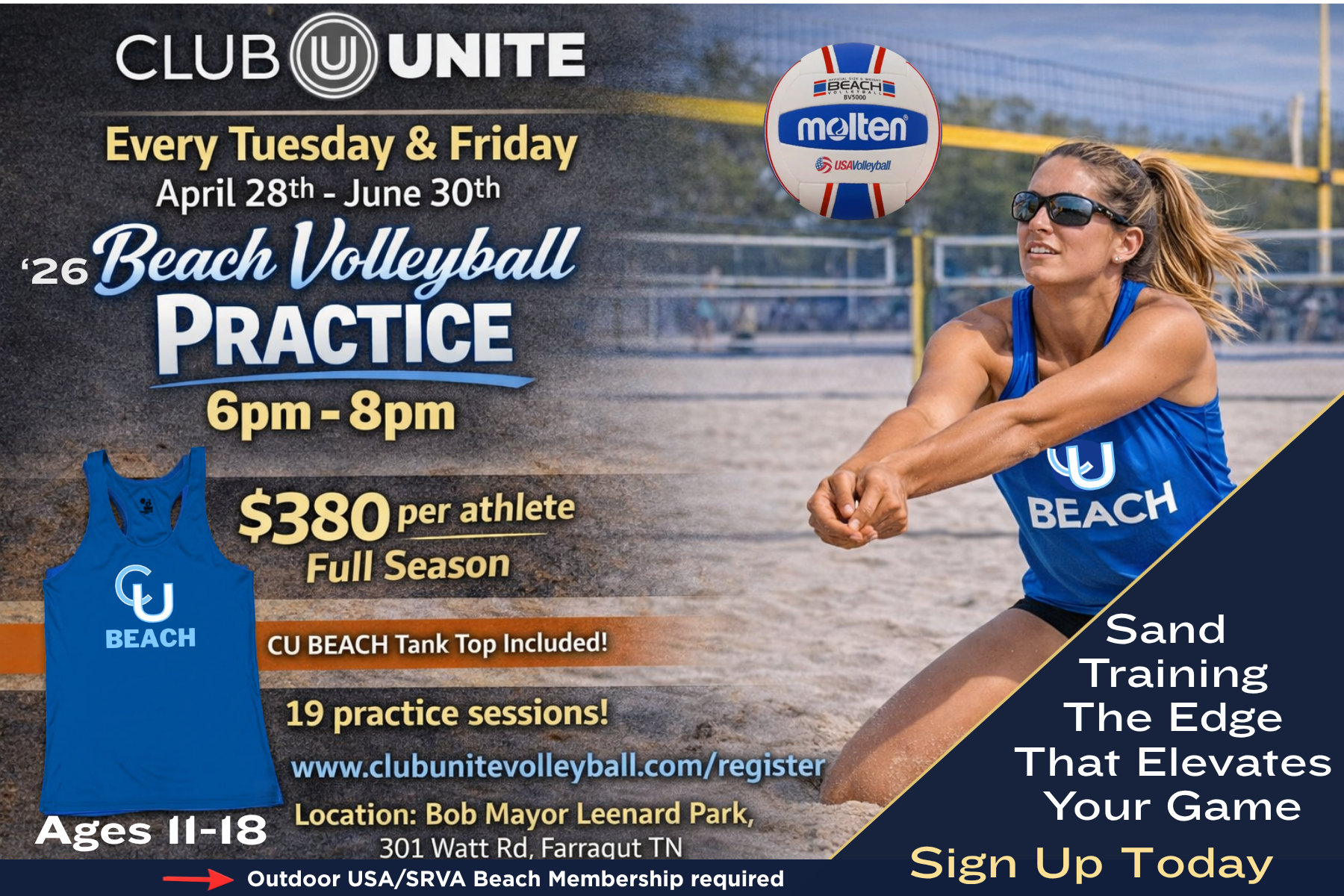 Ideally we would like all athletes to register by April 23rd. If a player notices we are offering a sand season after the deadline and we have spots available we will allow registration .