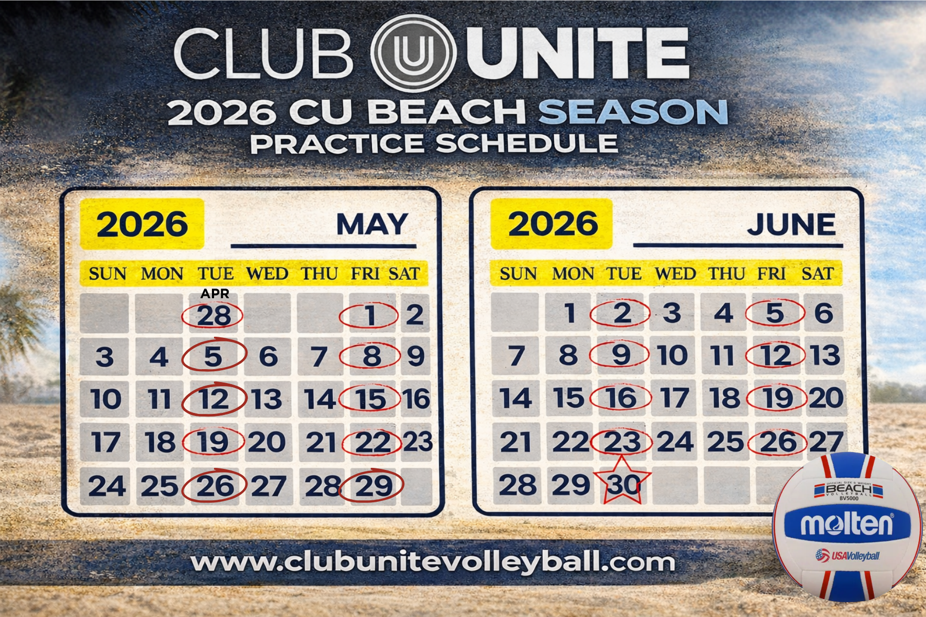 All practice/training dates are included in the fees; each athlete will receive a CU Beach tank top. The tournament entry fees are not included in the fees.
